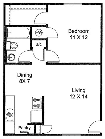 Apartment Model: SFR3 Bedroom, 1 Bath, 588-867 sq ftUnavailable![]()