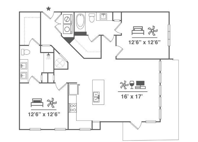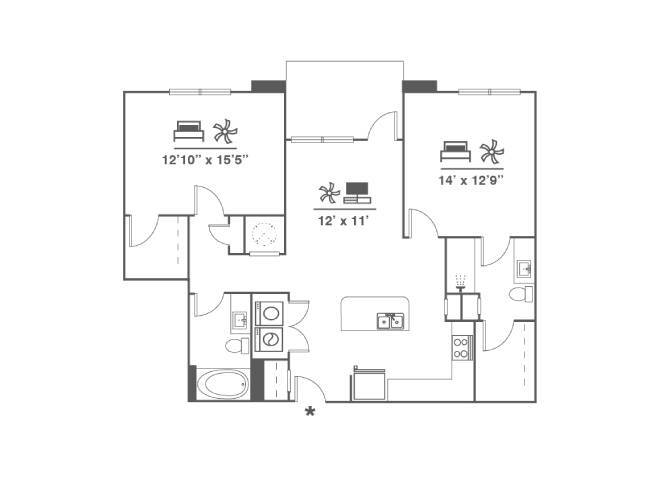 Apartment Model: A3From $1,6301 Bedroom, 1 Bath, 766 sq ftAvailable November 25, 2025![]()