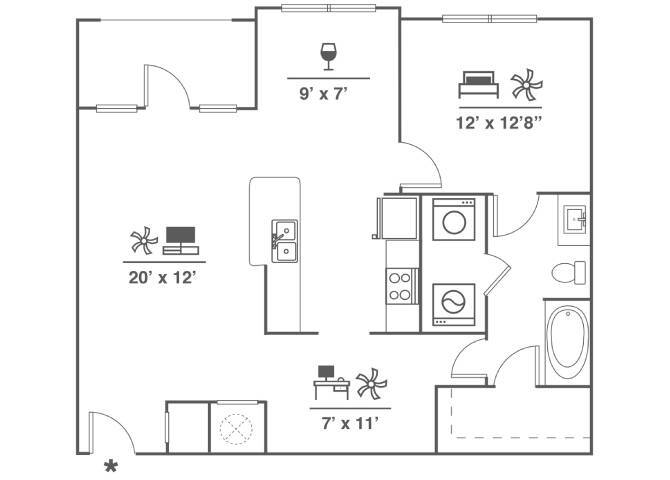 Apartment Model: A1From $1,5601 Bedroom, 1 Bath, 661 sq ftAvailable Now![]()
