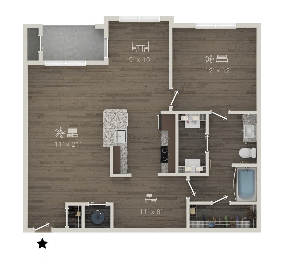 1 Bed, 1 Bath, 684-752 sq ftPlus FeesAvailable NowModel Gallery