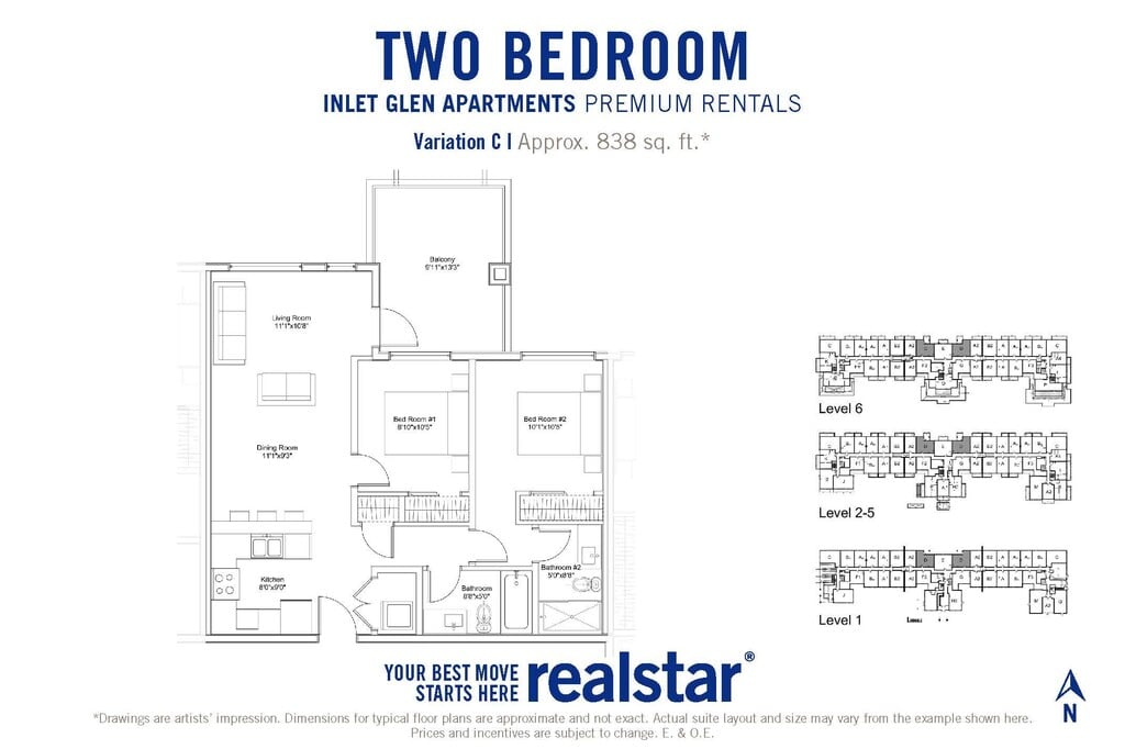 Apartment Model: 2 Bed 2 Bath C$2,5552 Bedroom, 2 Bath, 838 sq ftAvailable January 1, 2026![]()