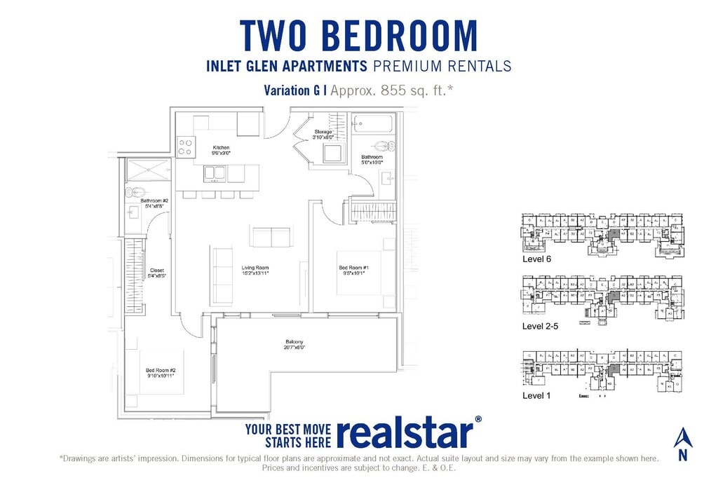 Inlet Glen Apartments offers 1 to 2 Bedroom apartments starting from $2,075 and having 634–910 sq ft. Here is the current pricing and availability: