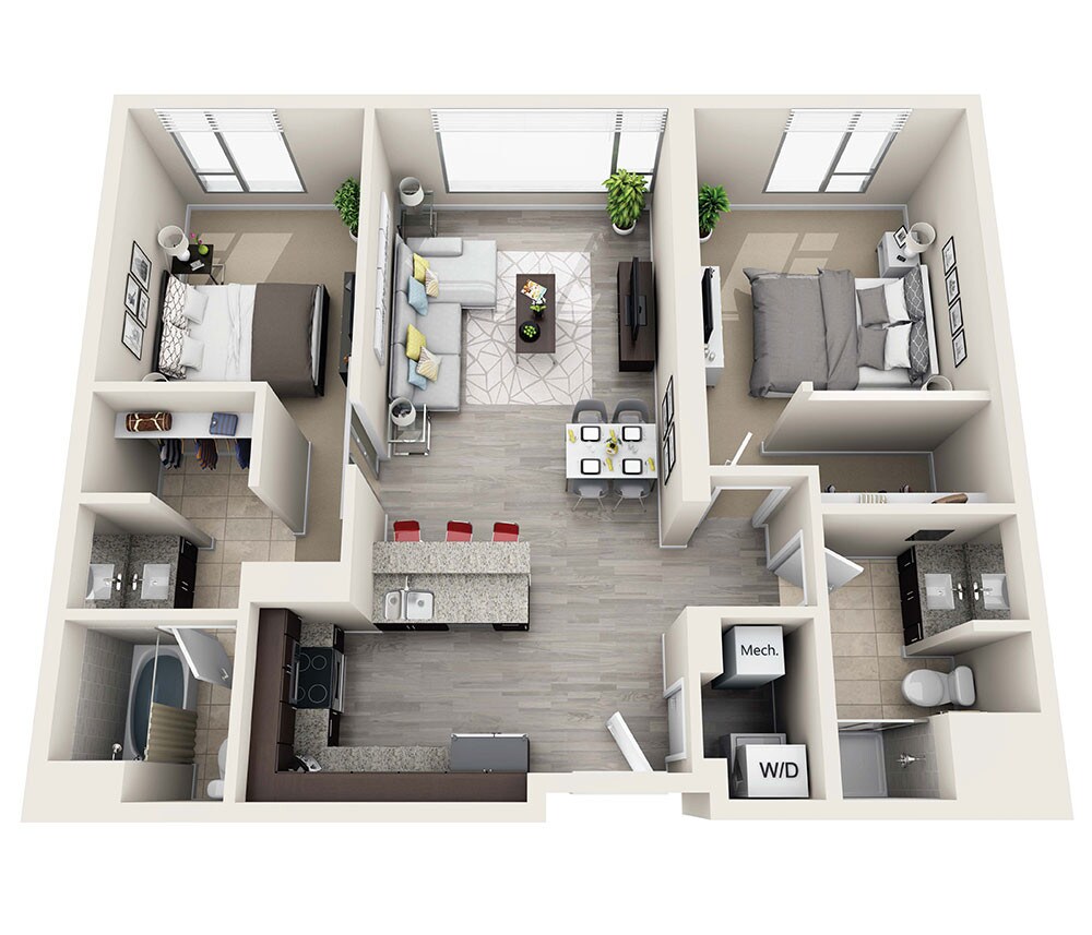2 Beds, 2 Baths, 1120 sq ftAvailable NowModel Gallery