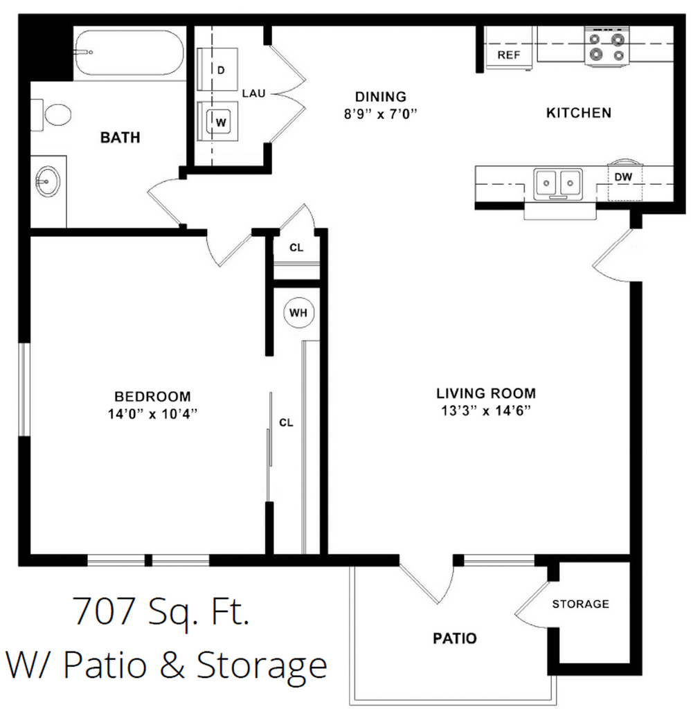 1 Bed, 1 Bath, 707 sq ftAvailable Nov 1Model Gallery
