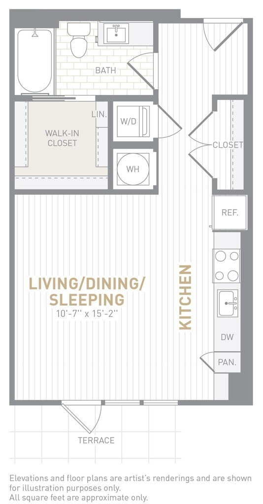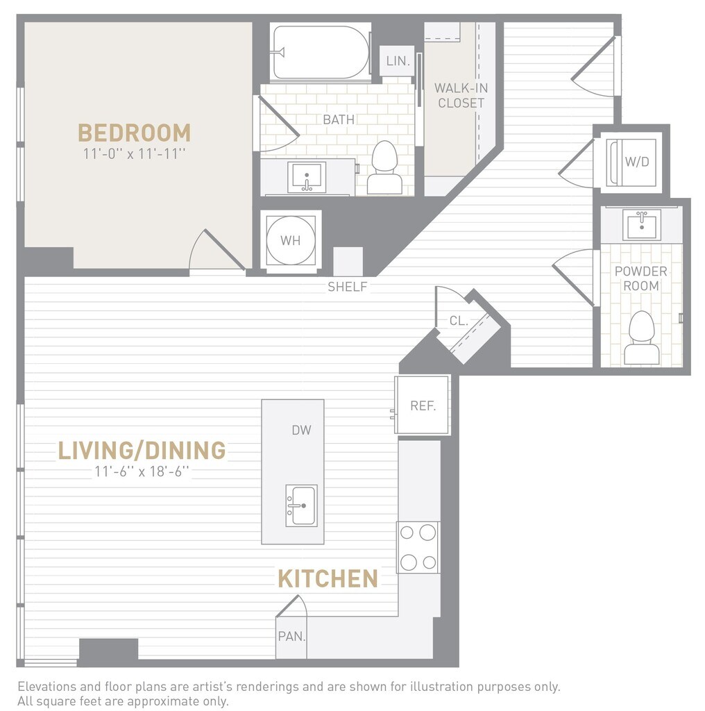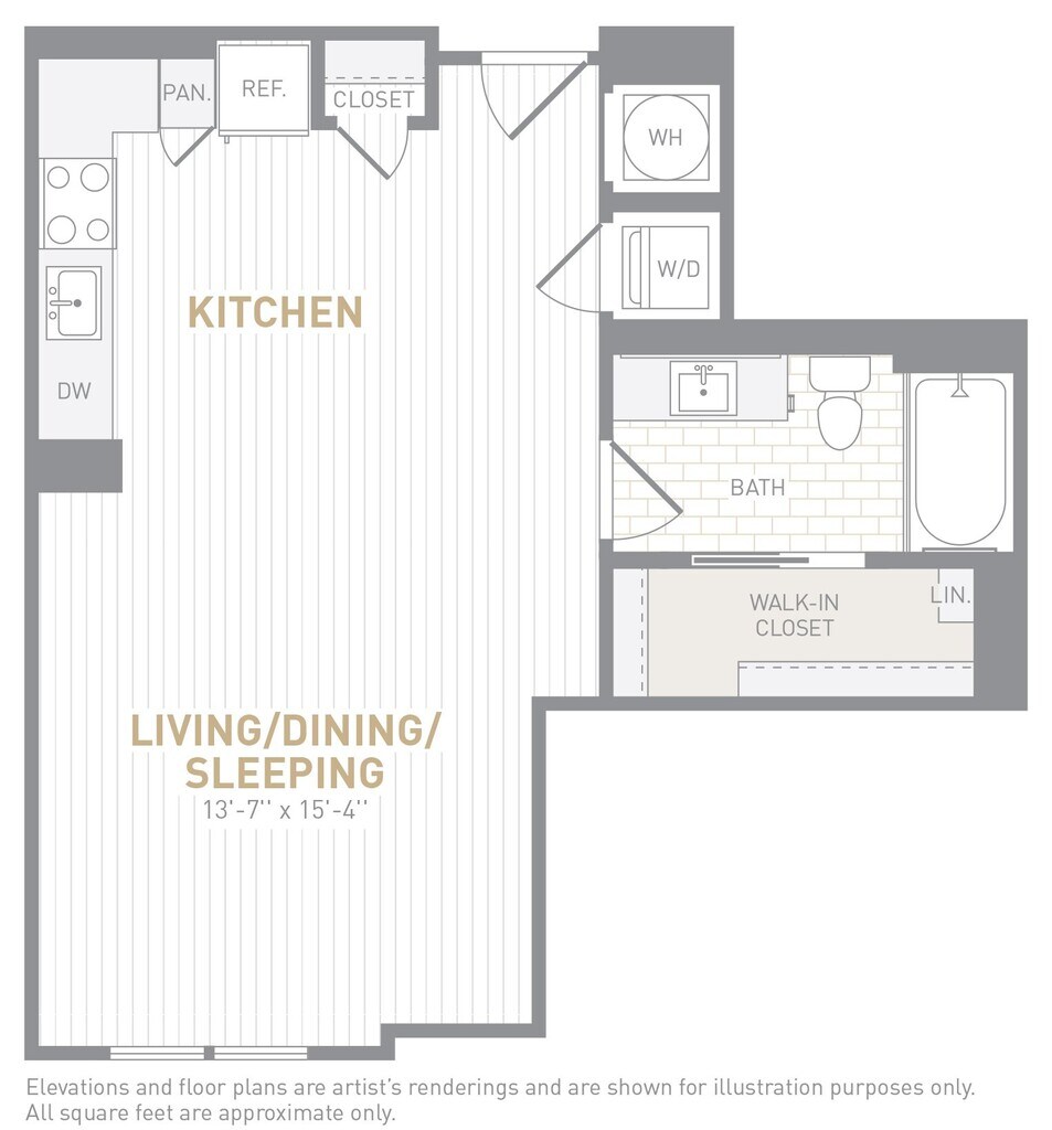 Studio, 1 Bath, 489 sq ftAvailable NowModel Gallery