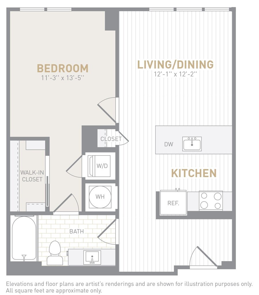 Studio, 1 Bath, 551 sq ftAvailable NowModel Gallery