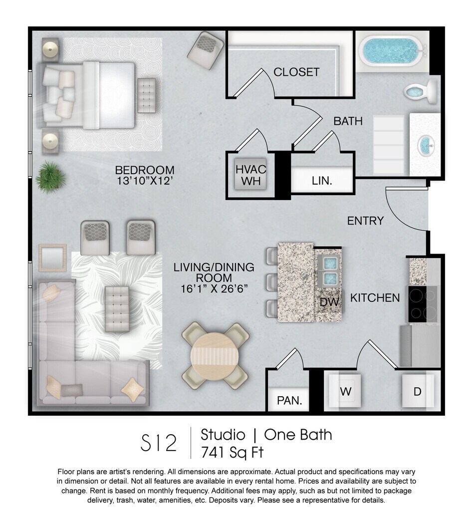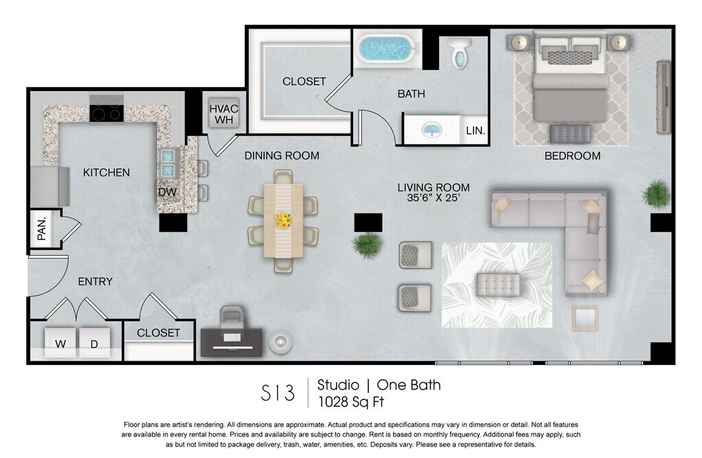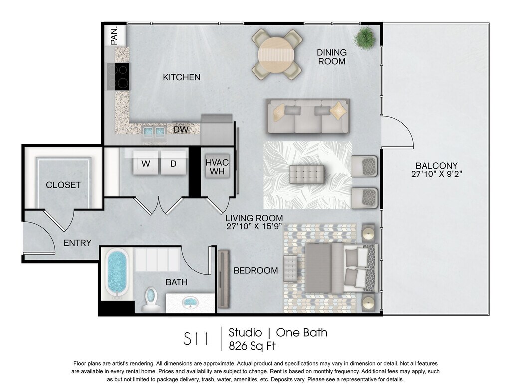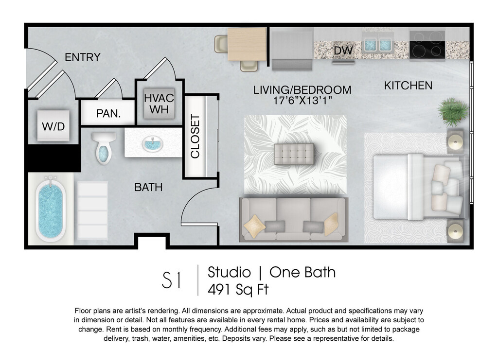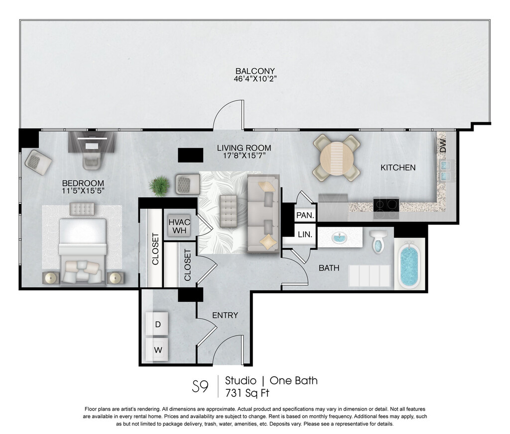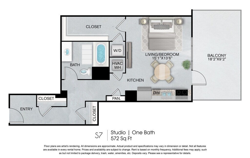 Studio, 1 Bath, 572 sq ftAvailable NowAvailability Details