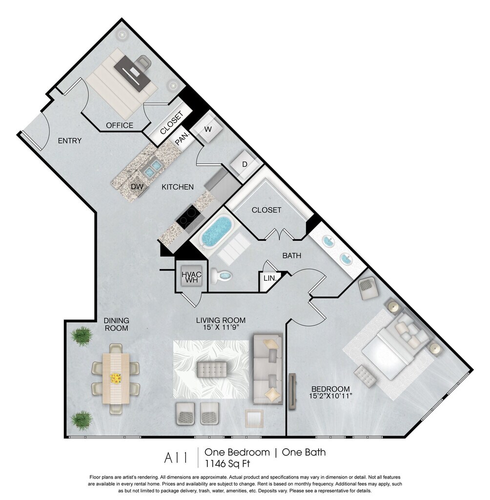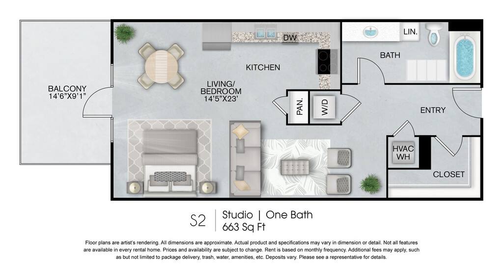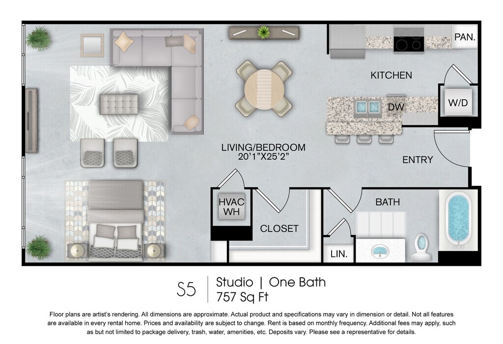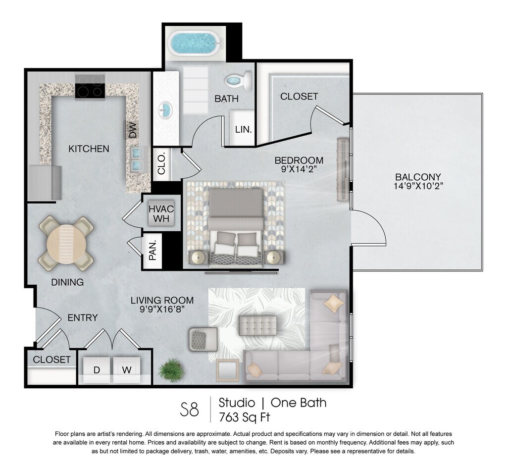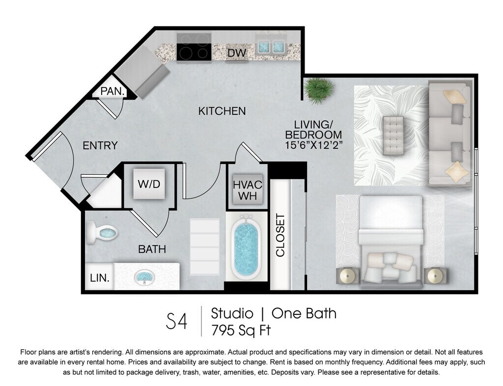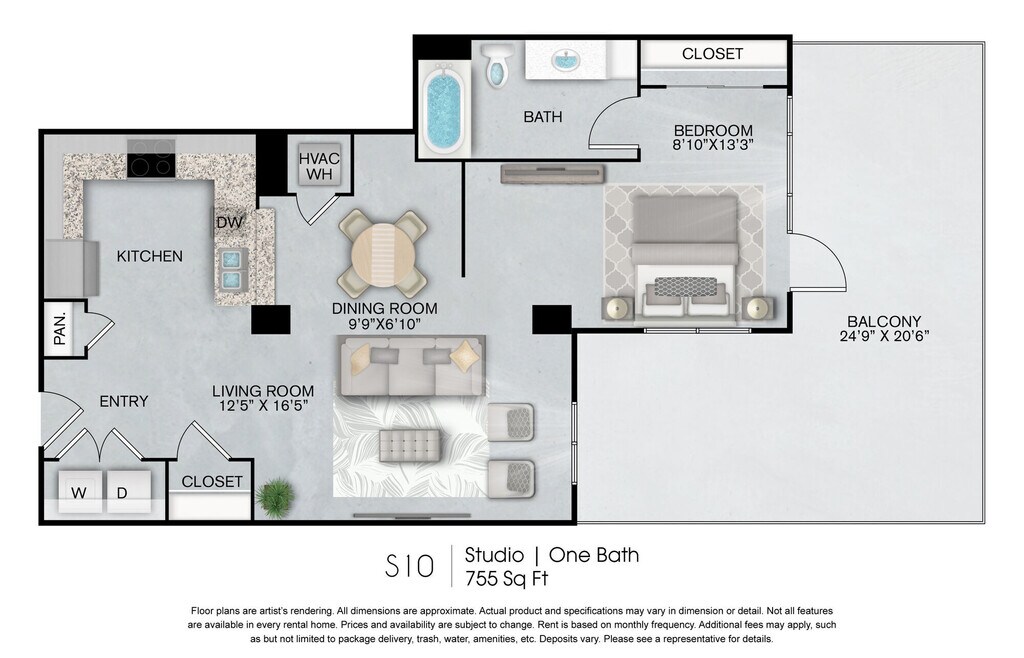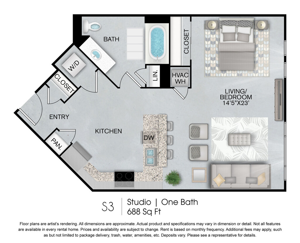 Studio, 1 Bath, 572 sq ftAvailable NowAvailability Details