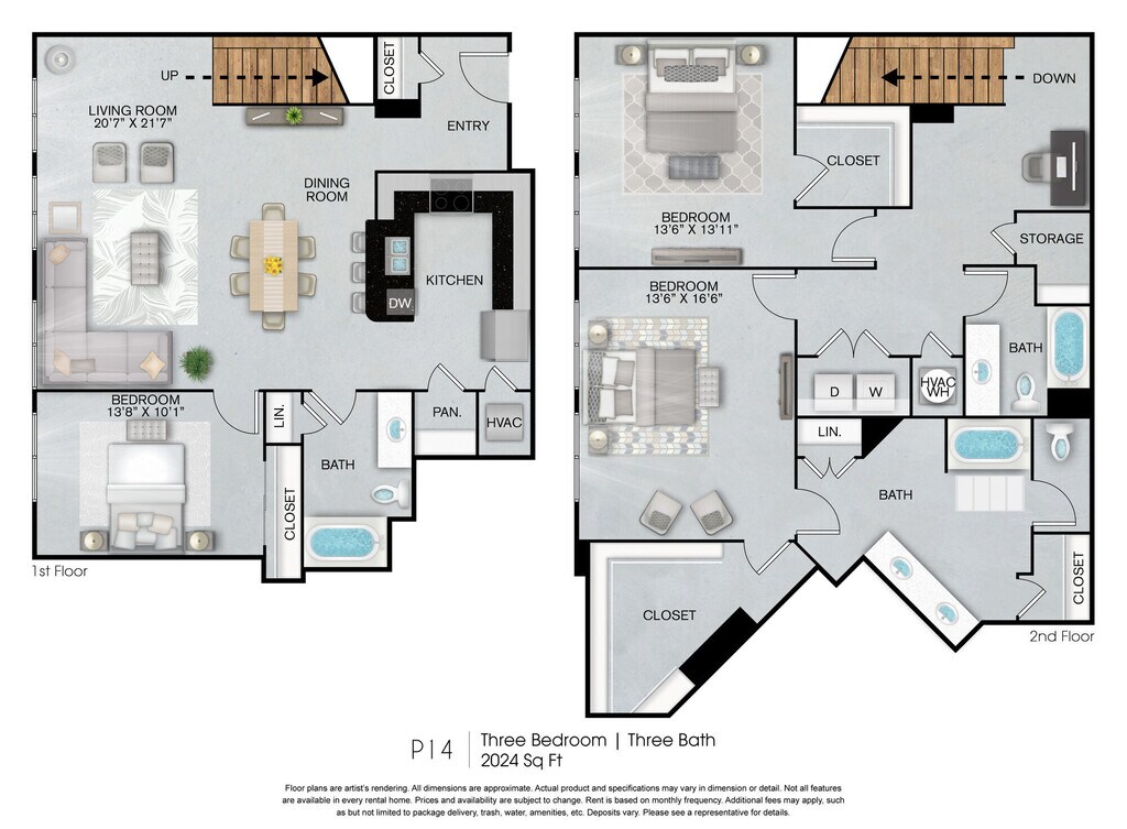 Inspire Downtown offers Studio to 3 Bedroom apartments starting from $1,293 and having 491–3,703 sq ft. Here is the current pricing and availability: