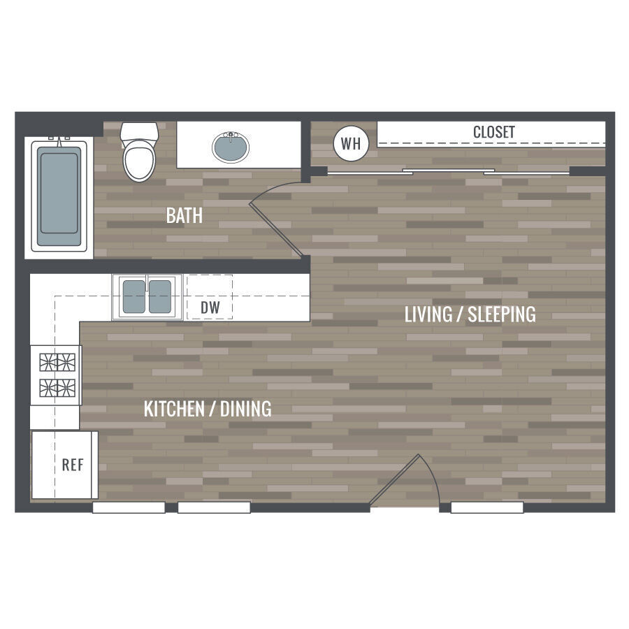Studio, 1 Bath, 403 sq ftTotal Monthly PriceAvailable NowModel Gallery