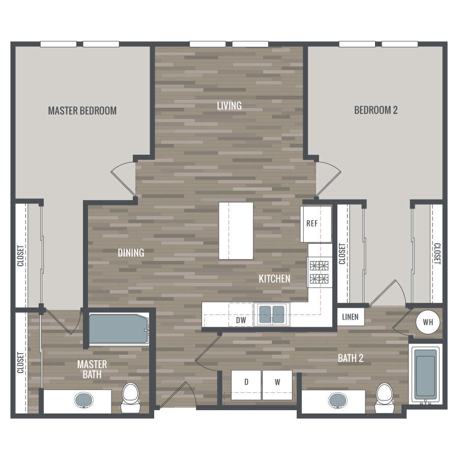 2 Beds, 2 Baths, 1170 sq ftTotal Monthly PriceAvailable NowModel Gallery
