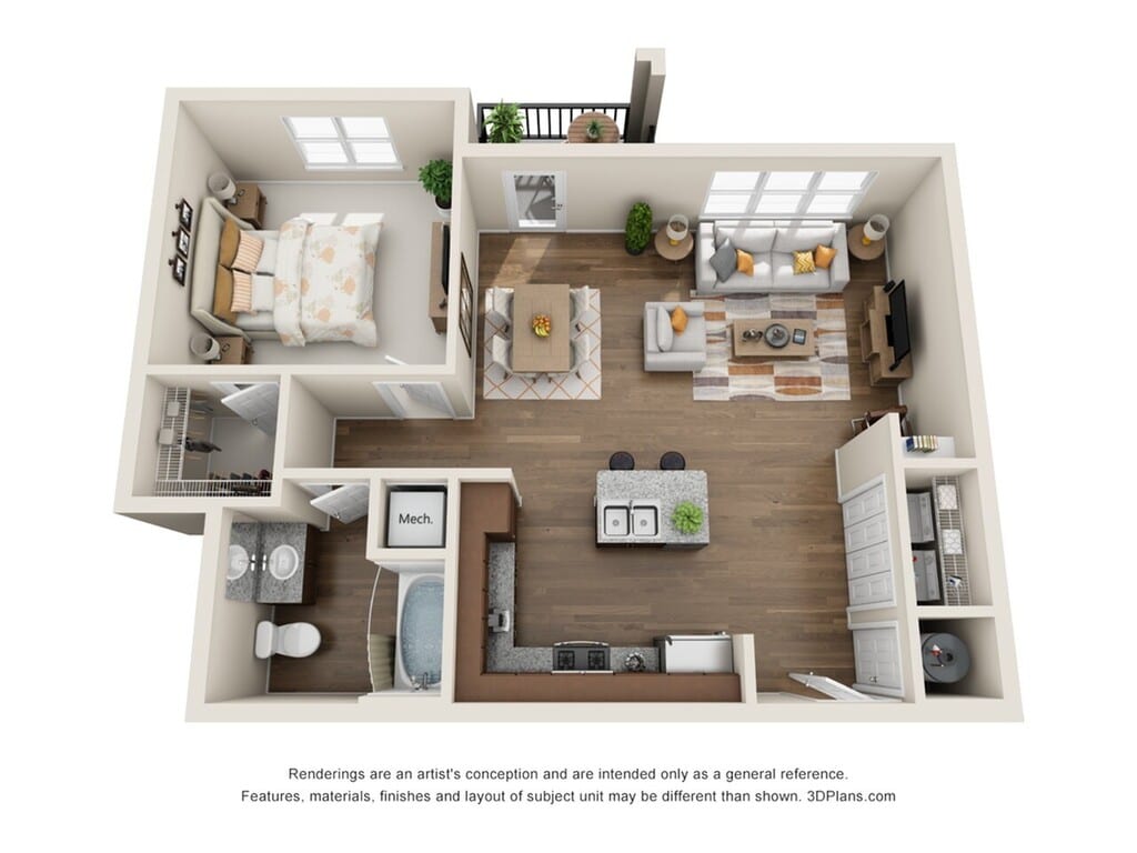 Apartment Model: A3From $1,5941 Bedroom, 1 Bath, 728 sq ftAvailable NowFloor plans are artist's rendering. All dimensions are approximate. Actual product and specifications may vary in dimension or detail. Not all features are available in every rental home. Prices and availability are subject to change. Base rent is based on monthly frequency. Additional fees may apply, such as but not limited to package delivery, trash, water, amenities, etc. Deposits vary. Please see a representative for details.