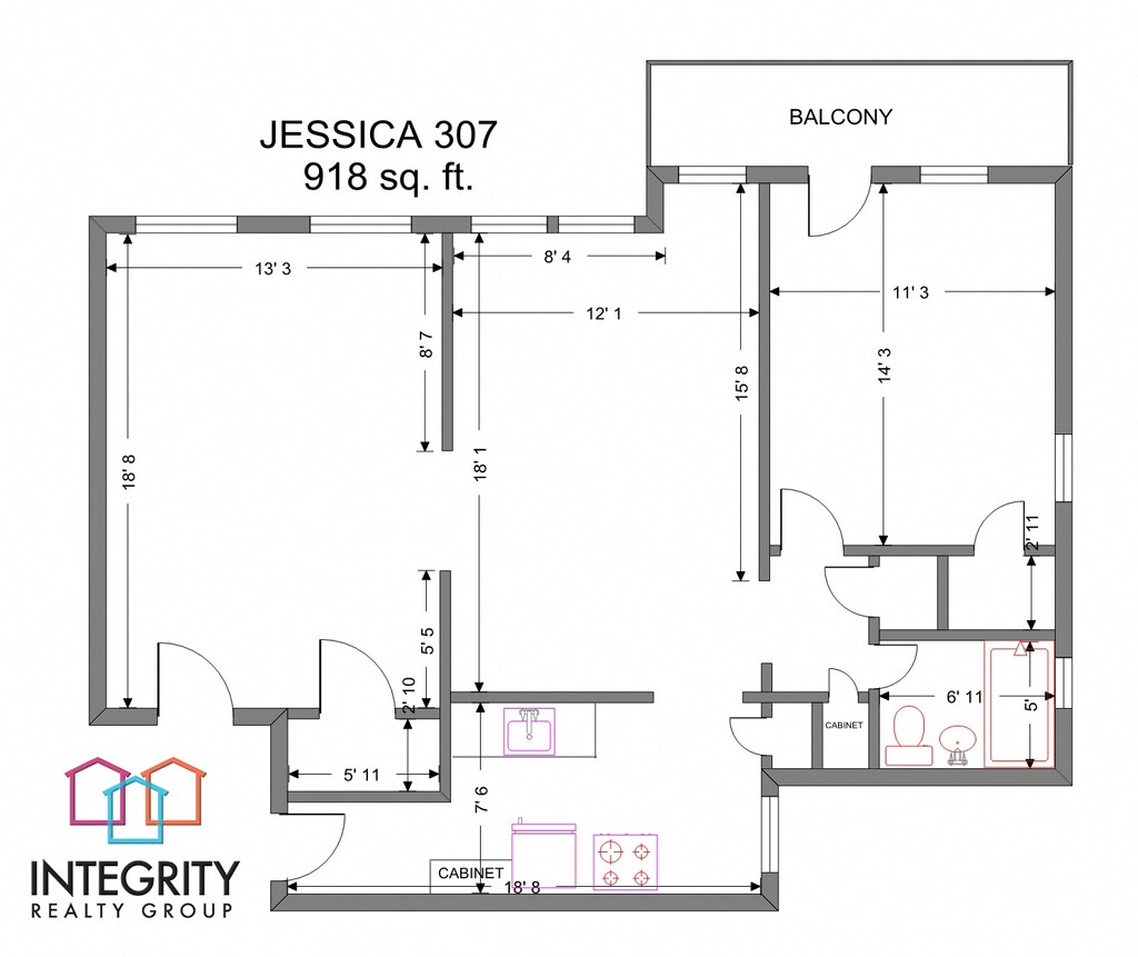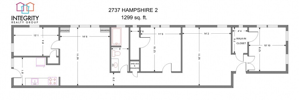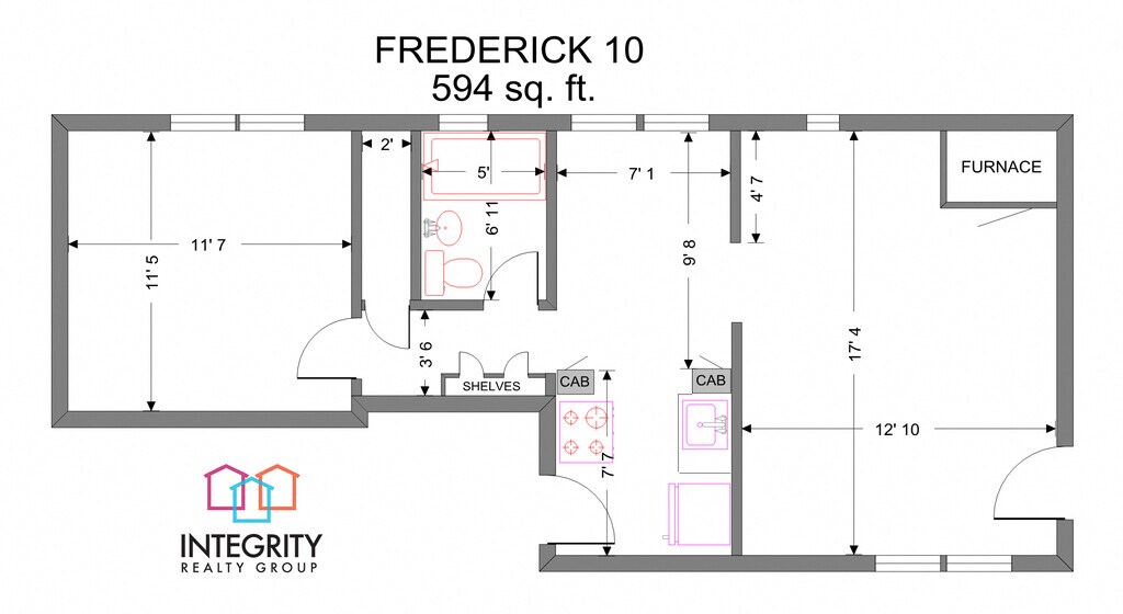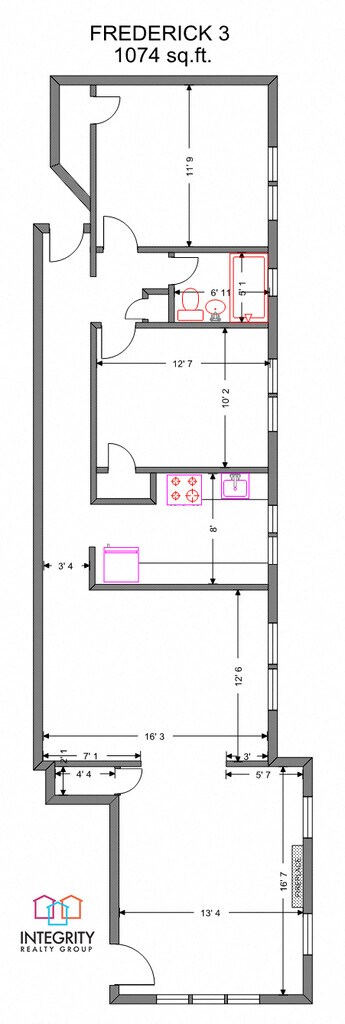Frederick, 1 Bedroom 1 Bath - Floorplan 2 ![]()