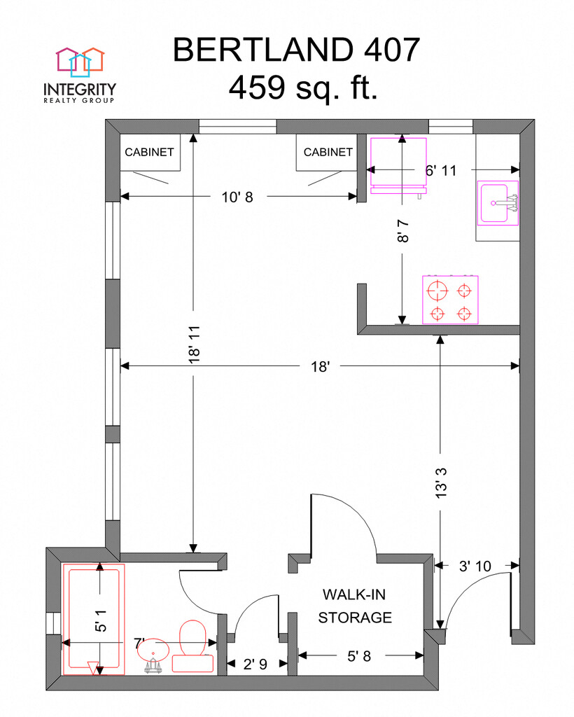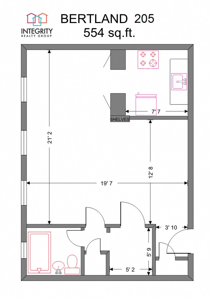The Bertland Studio - Floorplan 2 Apartment Unit: 101Apartment Model: The Bertland Studio$880Studio, 1 Bath, 554 sq ftAvailable Now1 Bedroom