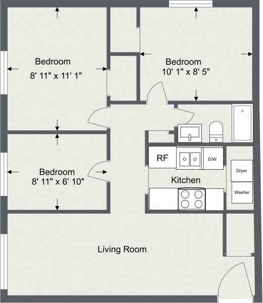 Apartment Model: 3 Bedroom 1.5 Bath (1050sqft)From $1,5123 Bedroom, 1.5 Bath, 1050 sq ftUnavailable![]() - 3 Bedroom 1.5 Bath (1050sqft) - Floorplan 1