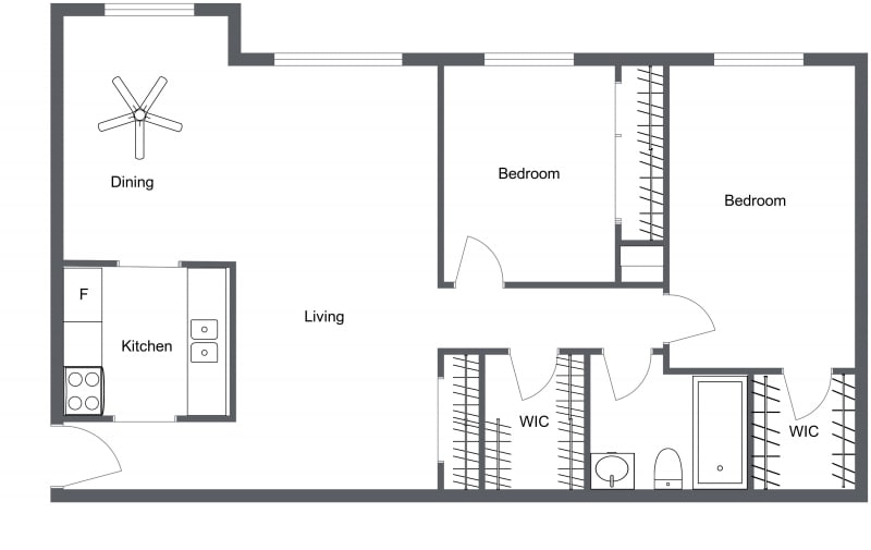 1 Bedroom 1 Bath A - Floorplan 1 2 Bedrooms