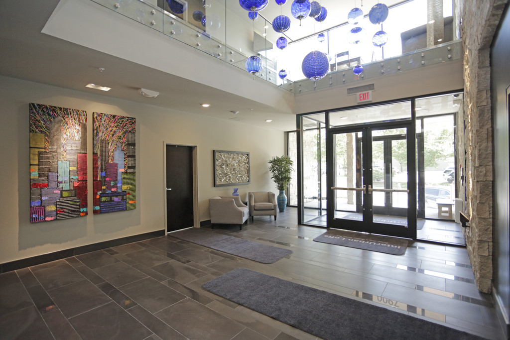 Boutique living in downtown Overland Park! If you want to live in an authentic urban district that has cool shops, restaurants, bars, a fabulous Farmer's Market, the historic Rio Theatre, includes state-of-the art unit and property amenities and is the most eco-friendly apartment building in the area then the InterUrban Lofts are for you. The InterUrban Lofts is a boutique mixed-use property located 1 1/2 blocks from the richly historic center of downtown Overland Park, Kansas. The InterUrban Lofts is small featuring 41 rental apartments, 7,400 sq. ft. of class A office space and a 54 car underground garage with assigned, heated and secured parking for residents. The property features art-filled common areas, boutique unit finishes and state-of-the-art amenities such as a common area WiFi, fitness center, outdoor terrace with entertainment features including fire pits, patio landscaping, outdoor TV, Trellis, BBQ grills and string lights providing a warm glow in the evenings. On the 2nd floor overlooking our atrium lobby is a coffee lounge featuring free coffee and other beverages for our residents. One of the best reasons to live at the InterUrban Lofts is to be within close walking distance to all of the great shops, restaurants, bars, Farmers Market and Rio Theatre in downtown Overland Park. Yet, at the InterUrban Lofts you still live in the quaint, quiet, walkable neighborhood. The InterUrban Lofts is truly a special place to live. The InterUrban Lofts is the only apartment community in downtown Overland Park to attain R5 Certification from the Johnson County Department of Health and Environment. We promote recycling, waste reduction and energy efficiency for the benefit of all. Thank you for your interest in the InterUrban Lofts!