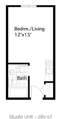 Studio, 1 Bath, 280 sq ftModel Gallery