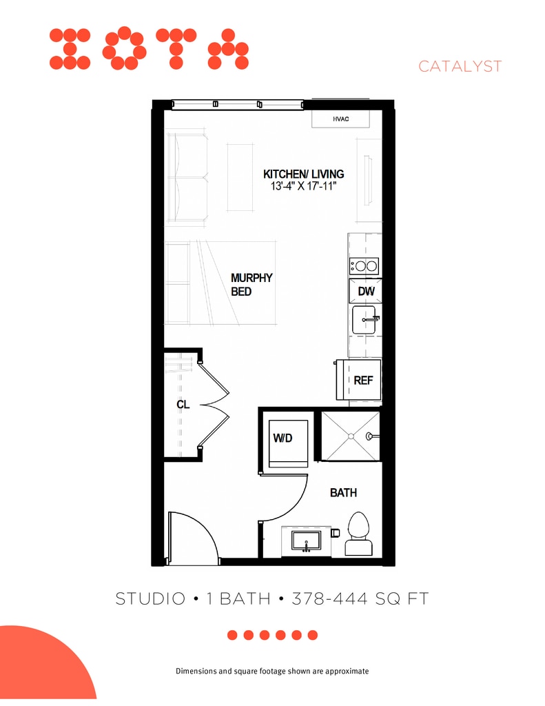 Studio, 1 Bath, 378-444 sq ftAvailable NowModel Gallery
