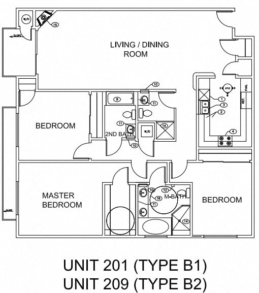2 beds, 2 baths - Floorplan 2 3 Bedrooms