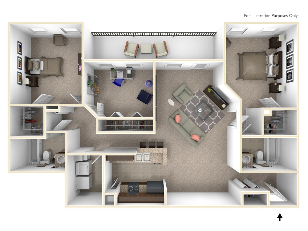 2 Beds, 2 Baths, 1099 sq ftAvailable NowLargest 2 BedroomThis is the largest 2 Bedroom at this PropertyModel Gallery