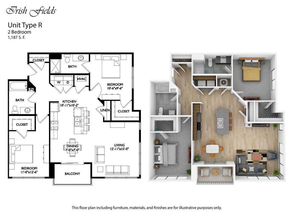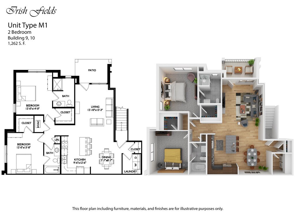 Irish Fields offers Studio to 3 Bedroom apartments starting from $1,600 and having 519–1,357 sq ft. Here is the current pricing and availability: