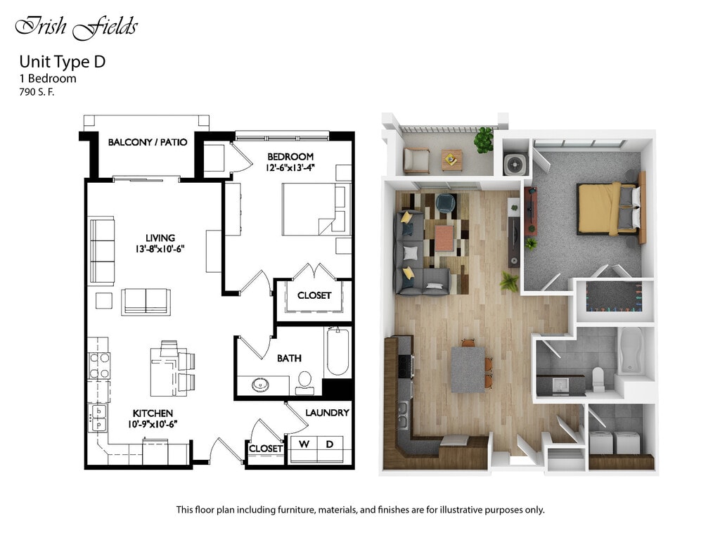 Apartment Model: DFrom $1,6001 Bedroom, 1 Bath, 789-790 sq ftAvailable November 1, 2025![]()