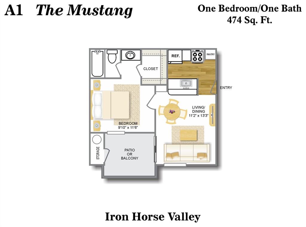 Iron Horse Valley Apartments offers 1 to 2 Bedroom apartments starting from $699 and having 404–1,086 sq ft. Here is the current pricing and availability: