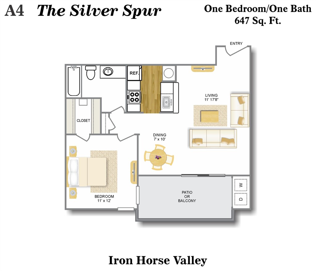 Price Availability Date Unit Sq Ft From $789 Available Now A4 The Silver Spur 647 sq ft Model Amenities and Features