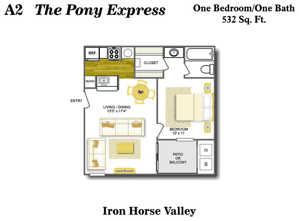 Price Availability Date Unit Sq Ft $749 Available Now A2 The Pony Express 532 sq ft Model Amenities and Features