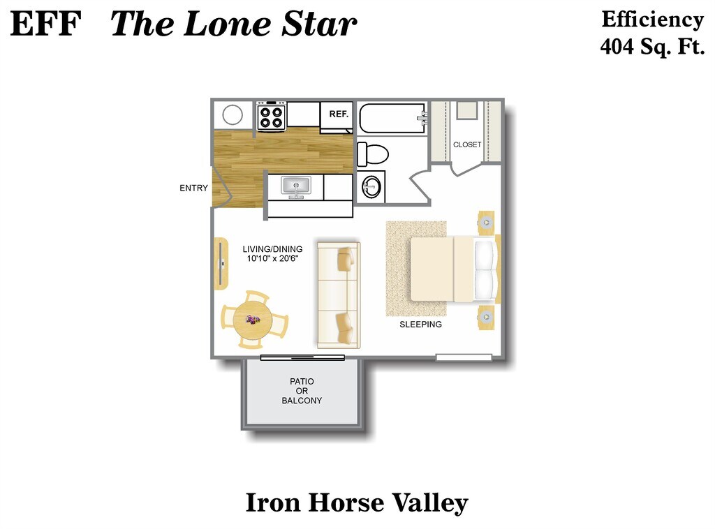 Price Availability Date Unit Sq Ft $699 Available Now EFF The Lone Star 404 sq ft Model Amenities and Features