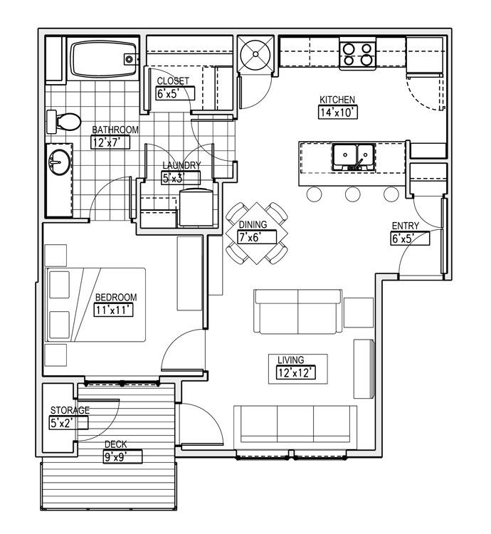 1 Bed, 1 Bath, 710 sq ftAvailable NowModel Gallery