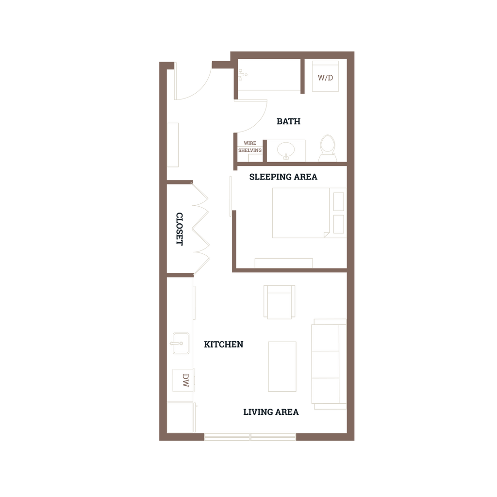 Apartment Model: StudioCall For RatesStudio, 1 Bath, 380-402 sq ftUnavailableStudio - Floorplan 1 1 Bedroom