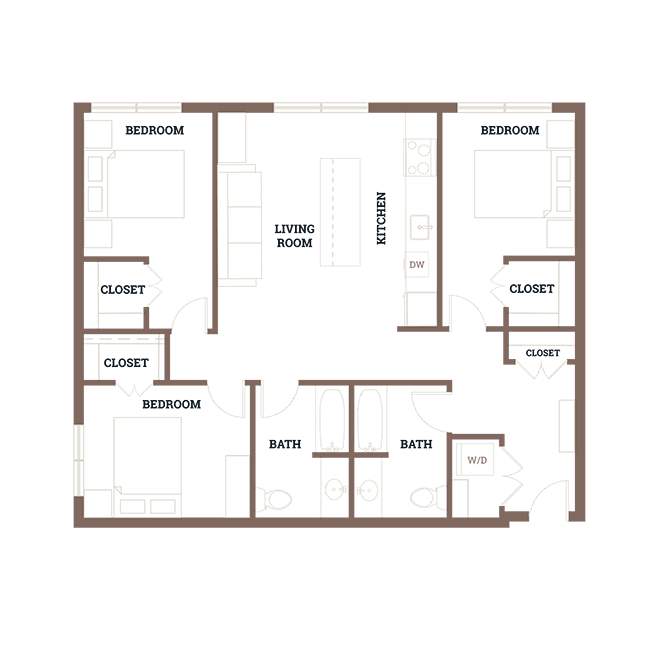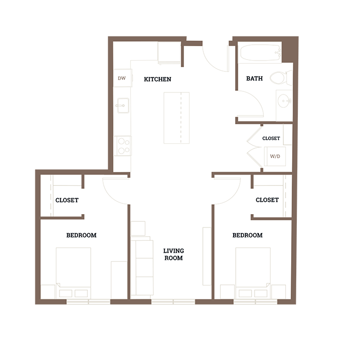 2 Beds, 1 Bath, 804 sq ftAvailable NowModel Gallery