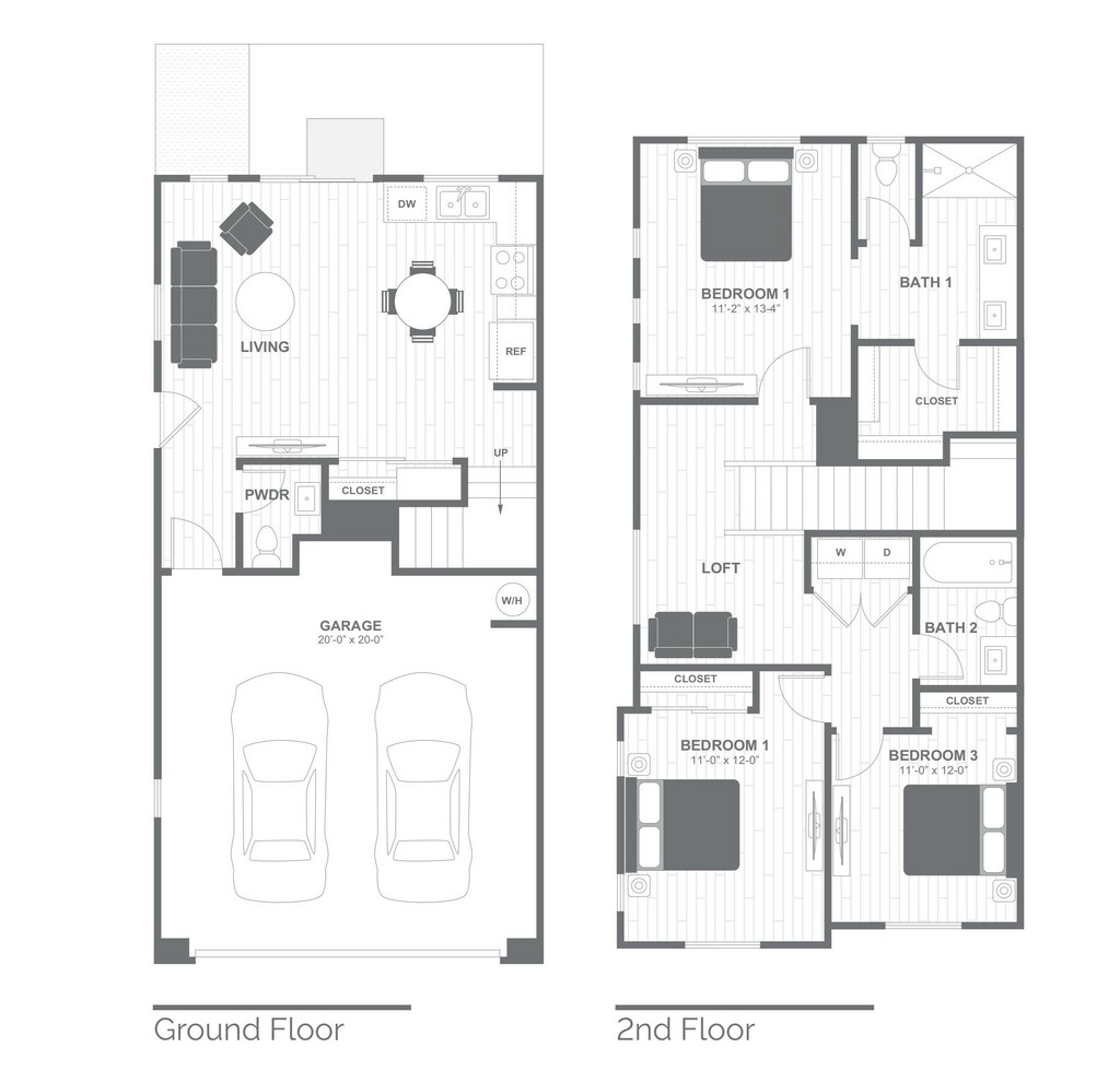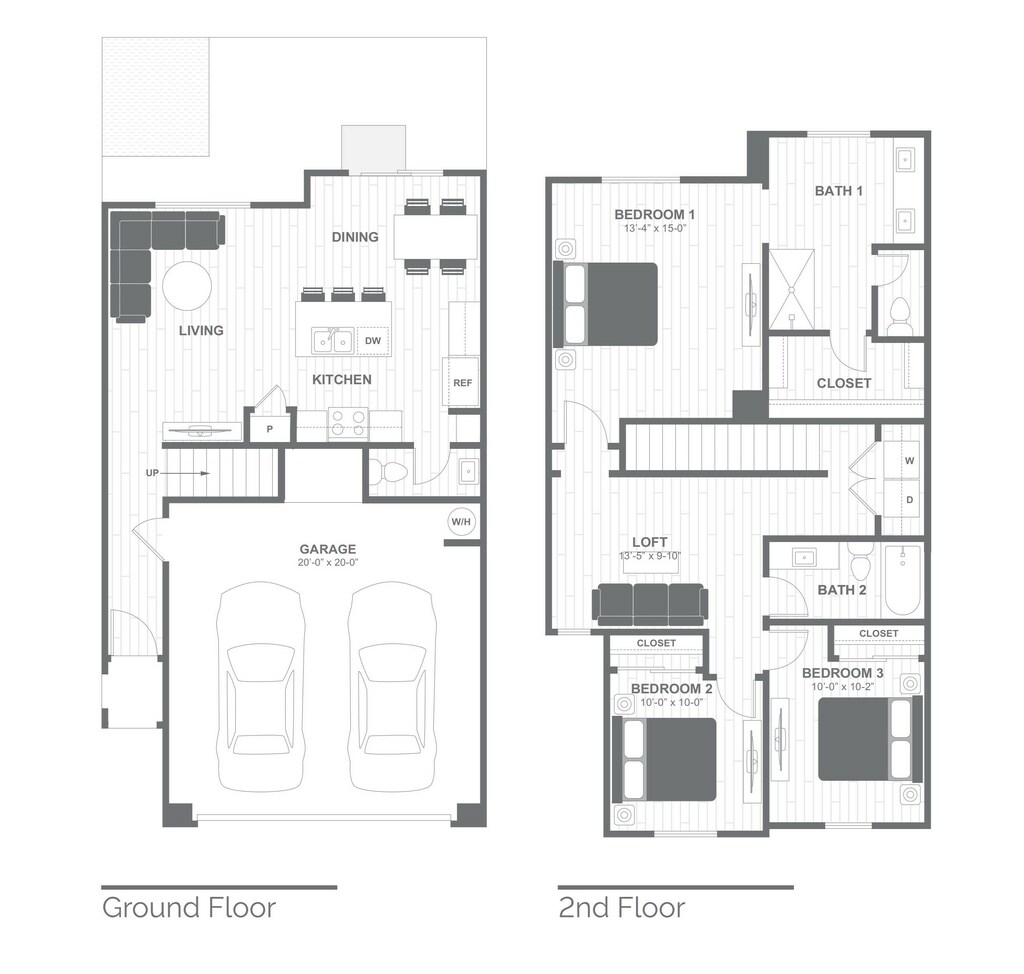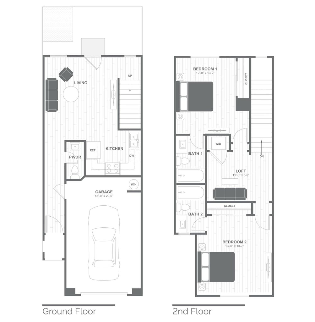 2 Beds, 2.5 Baths, 1054 sq ftAvailable NowModel Gallery