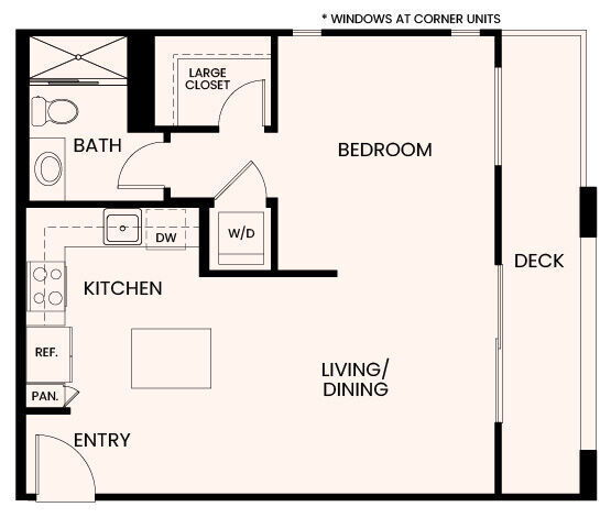 Studio, 1 Bath, 577 sq ftAvailable NowModel Gallery