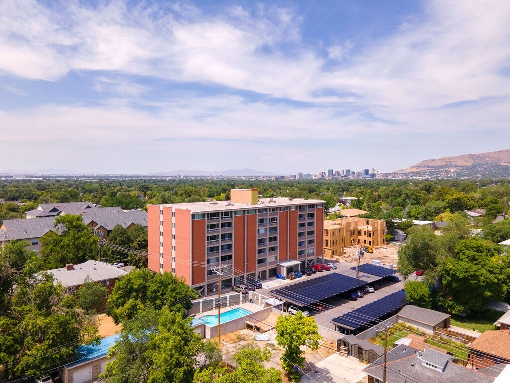 Located in the heart of Sugarhouse, one of Salt Lake’s most popular neighborhoods, Irving Heights is a luxury 7 story building with great views of the mountains to the east and the Salt Lake skyline to the west. Irving Heights is within walking distance of grocery stores, retail shops, great restaurants and coffee shops. With the freeway access so close, Irving Heights is minutes from downtown or the mountains. Some of the amenities at Irving Heights include: controlled access doors with an electric key system, an onsite laundry facility which is open 24/7, an outdoor swimming pool opened during the summer, online rent pay, and recycling; we even offer glass recycling.