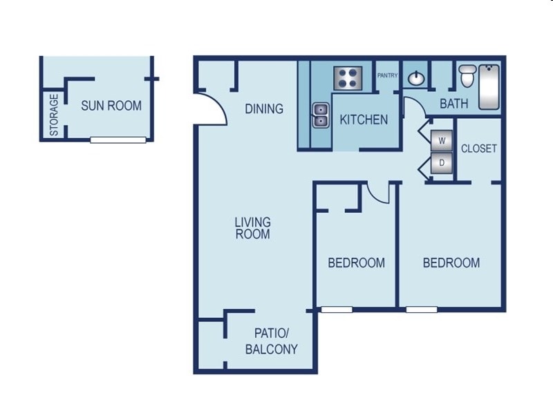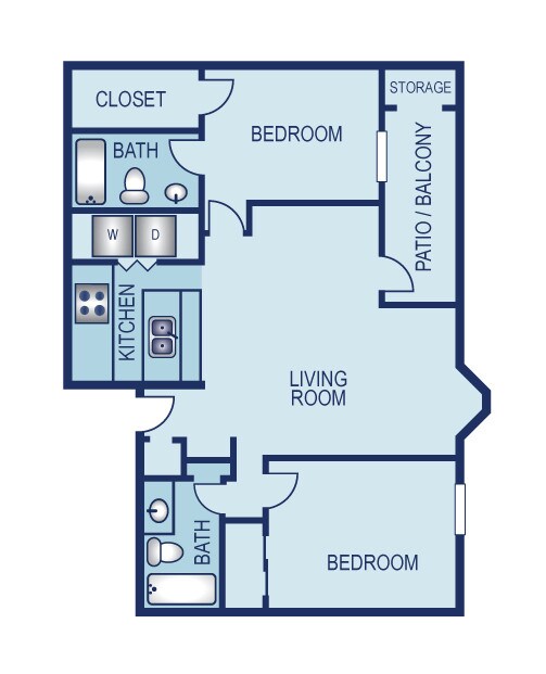 2 Beds, 2 Baths, 975 sq ftLargest 2 BedroomThis is the largest 2 Bedroom at this PropertyModel Gallery