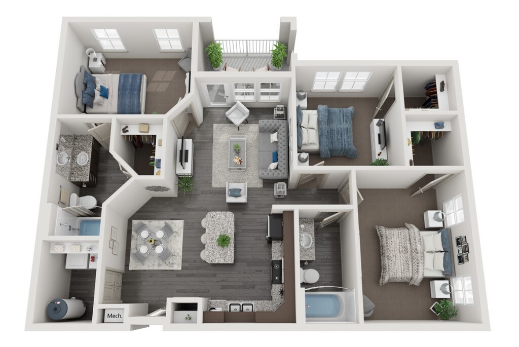 B1 - Floorplan 1 Apartment Unit: 1203Apartment Model: B1$1,8492 Bedroom, 2 Bath, 1051 sq ftAvailable NowApartment Unit: 2315Apartment Model: B1$1,8492 Bedroom, 2 Bath, 1051 sq ftAvailable NowApartment Unit: 3414Apartment Model: B1$1,8592 Bedroom, 2 Bath, 1051 sq ftAvailable Now3 Bedrooms