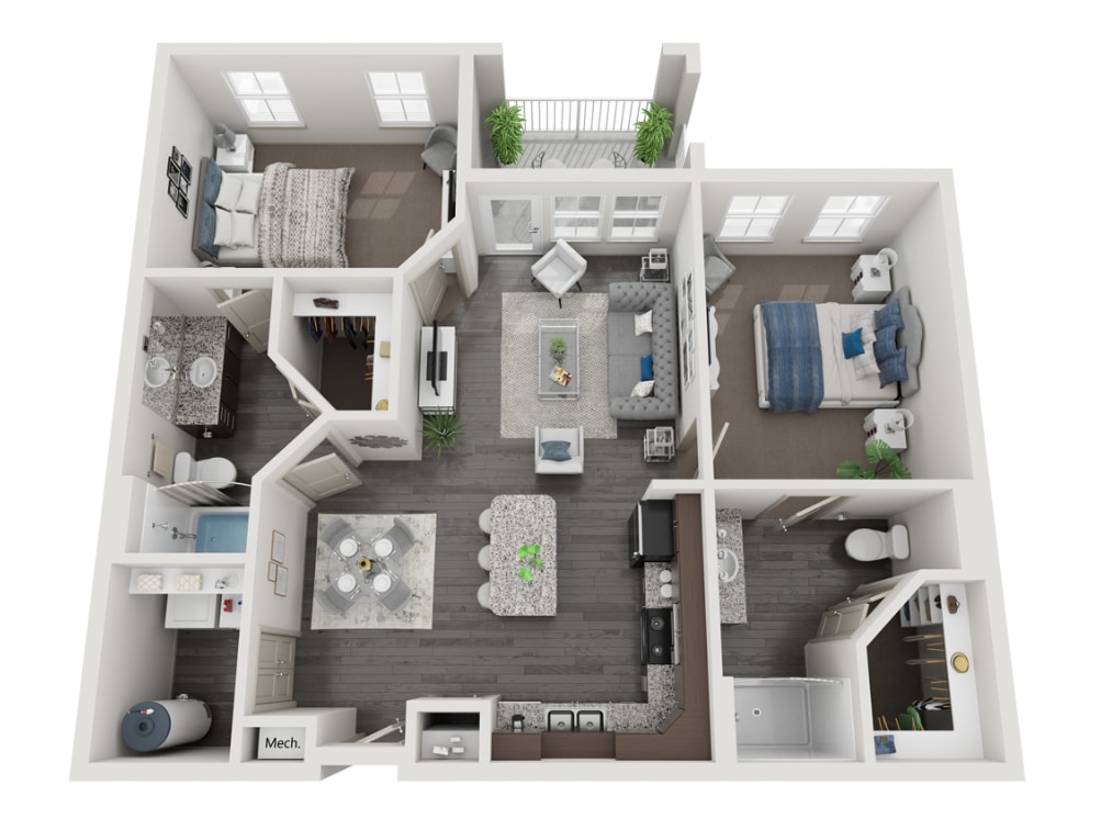 2 Beds, 2 Baths, 1051 sq ftAvailable NowModel Gallery