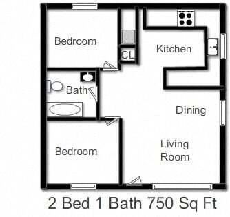 Apartment Model: 2 Bedroom, 1 Bath2 Bedroom, 1 Bath, 750 sq ftAvailable December 5, 2025![]()