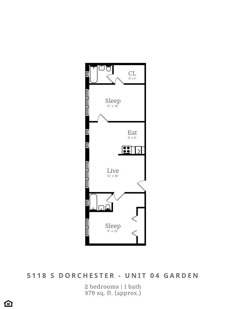 2 Bedroom 1 Bathroom (C1) - Floorplan 1 2 Beds, 2 baths