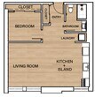 First Floor One Bedroom - 630 sqft - Floorplan 1 ![]()