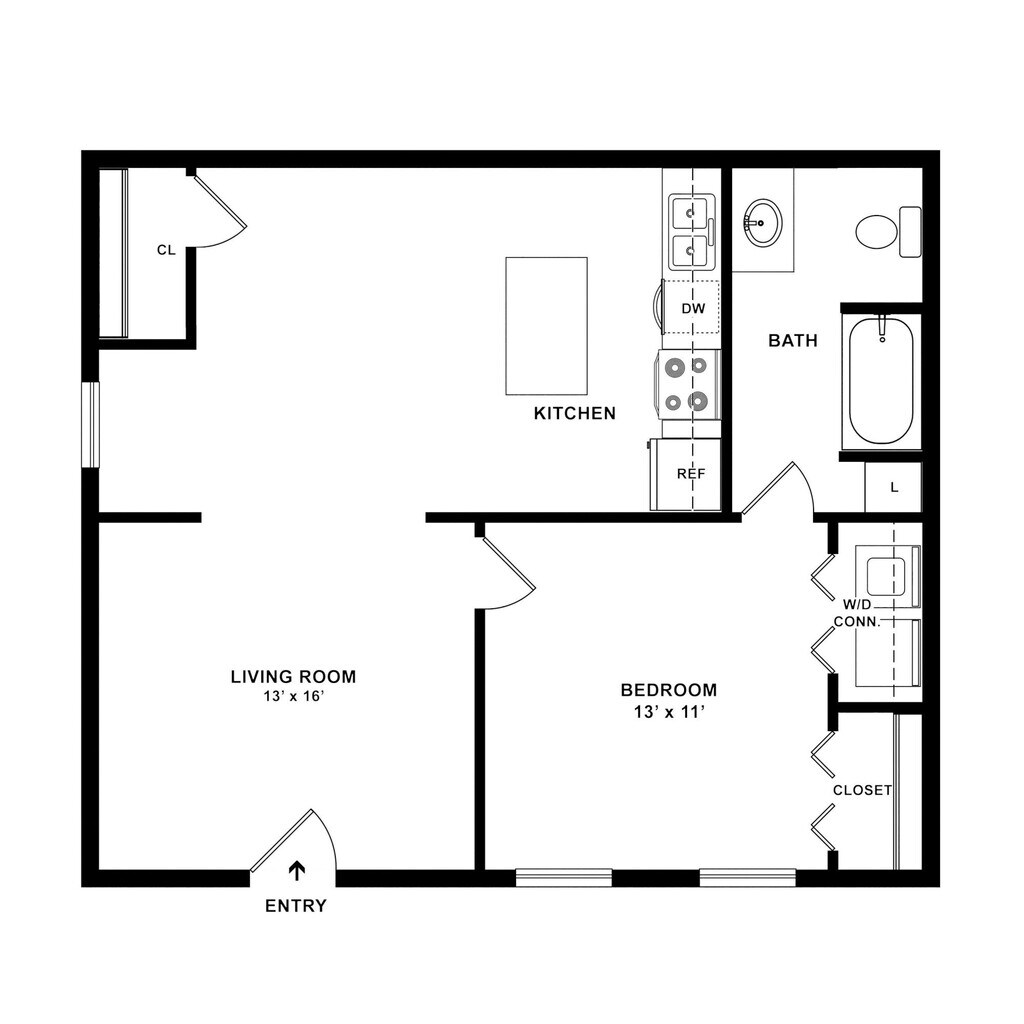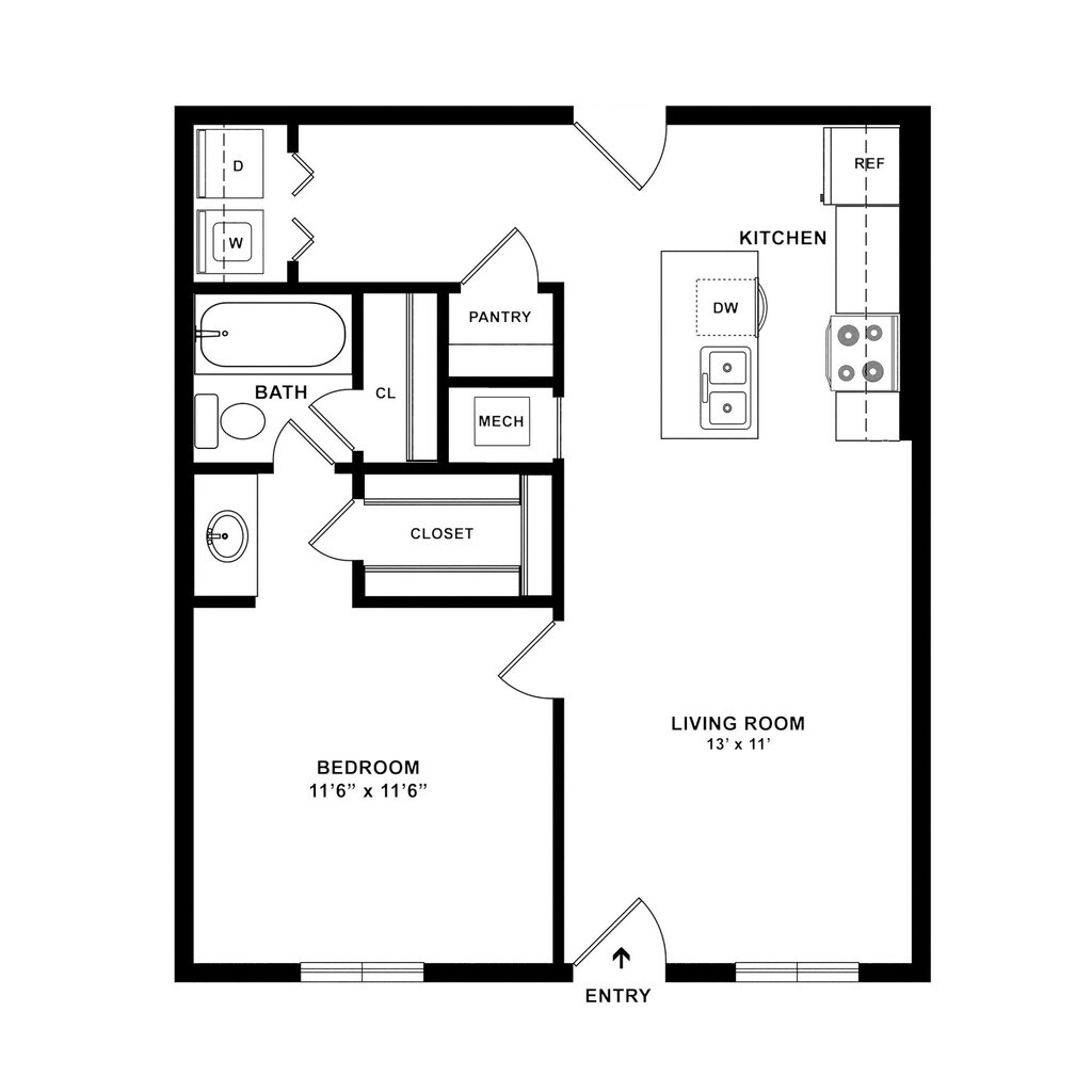 The Tacoma 1x1 - Floorplan 2 ![]()