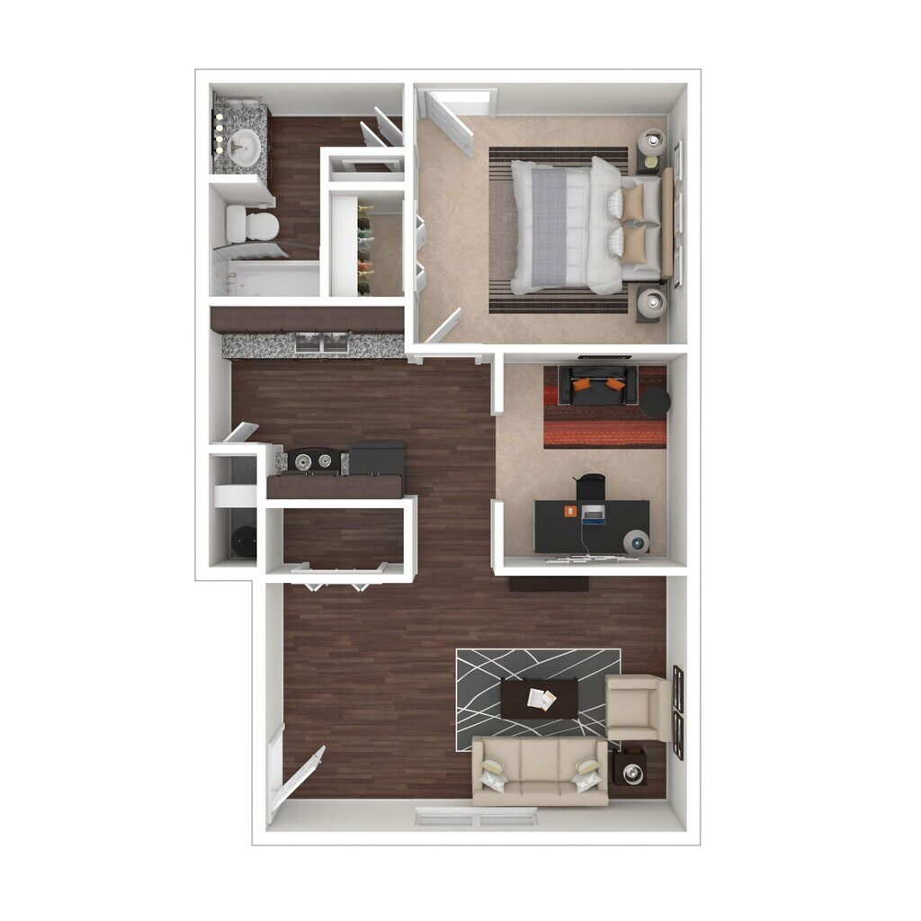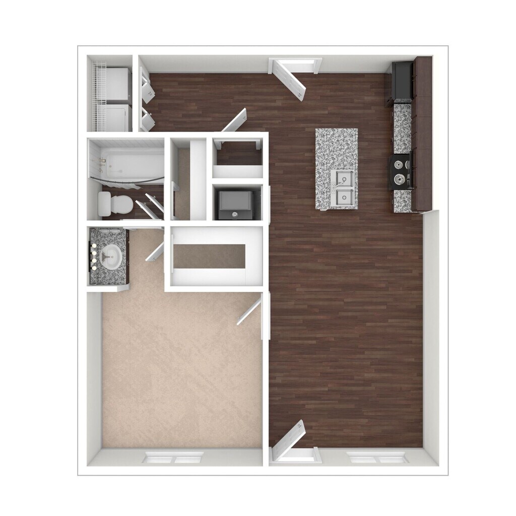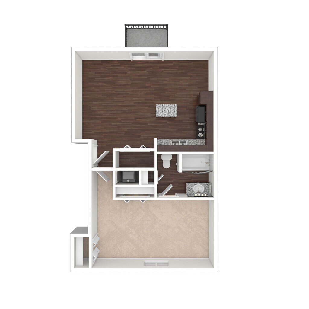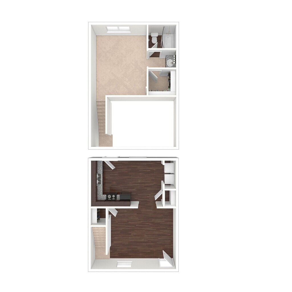 The Leawood 1x1 - Floorplan 3 The Woodrow 1x1 Loft