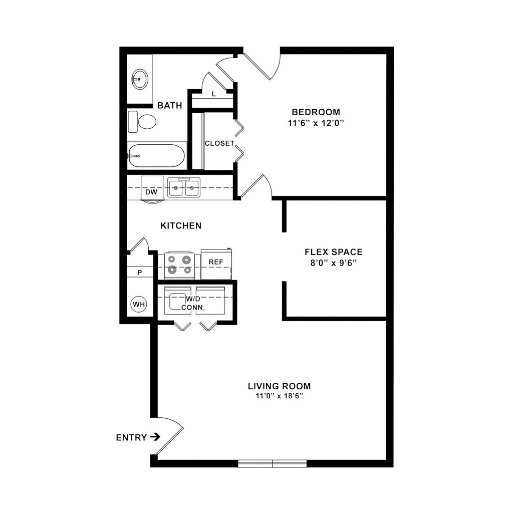 The Tacoma 1x1 - Floorplan 3 The Jasper 1x1.5