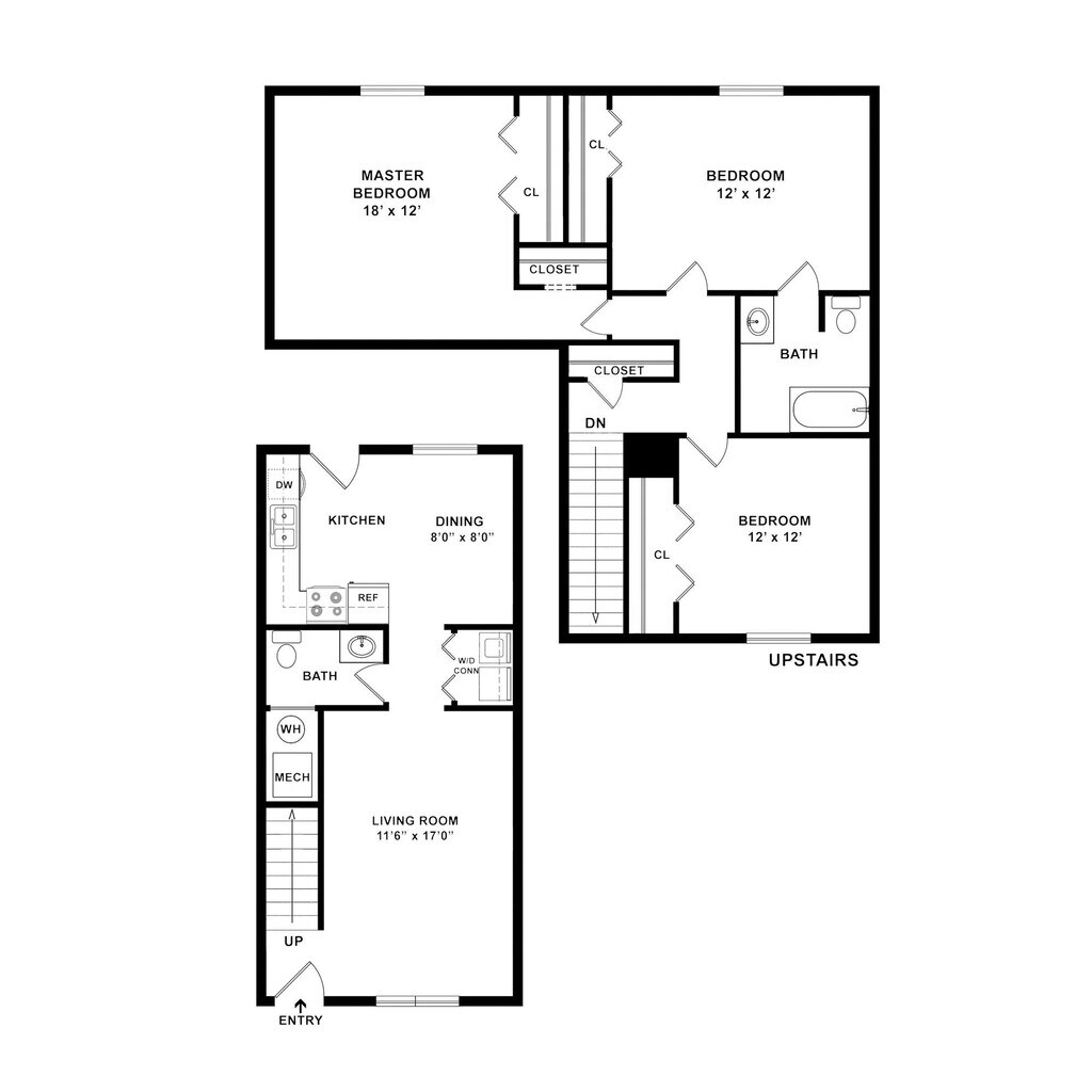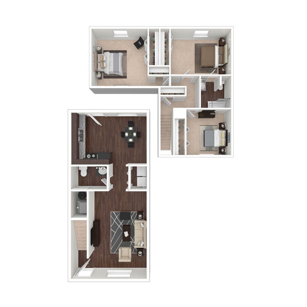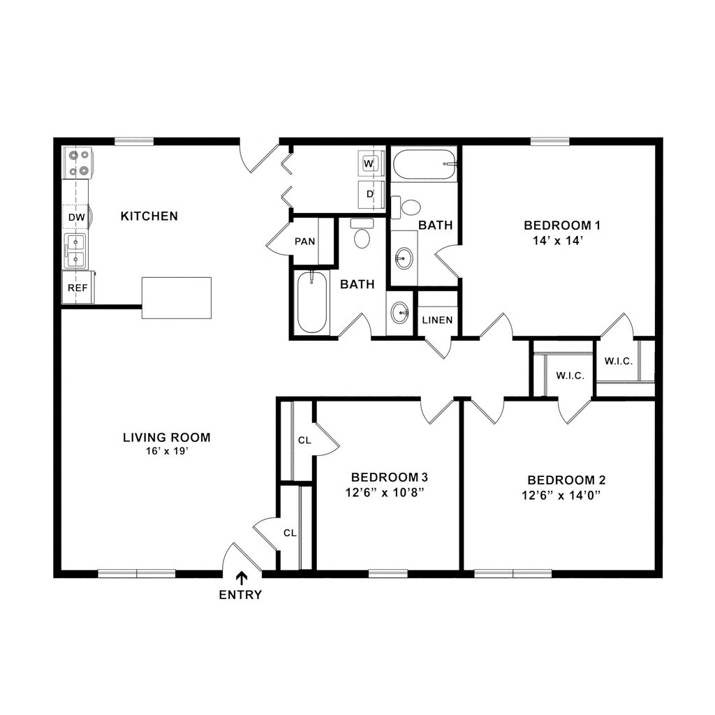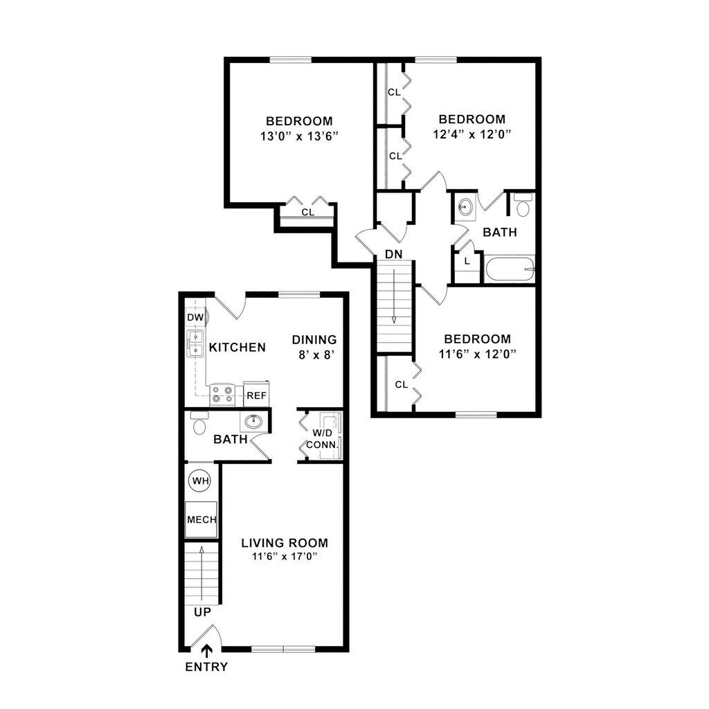 The Ashland 2x1.5 - Floorplan 3 3 Bedrooms