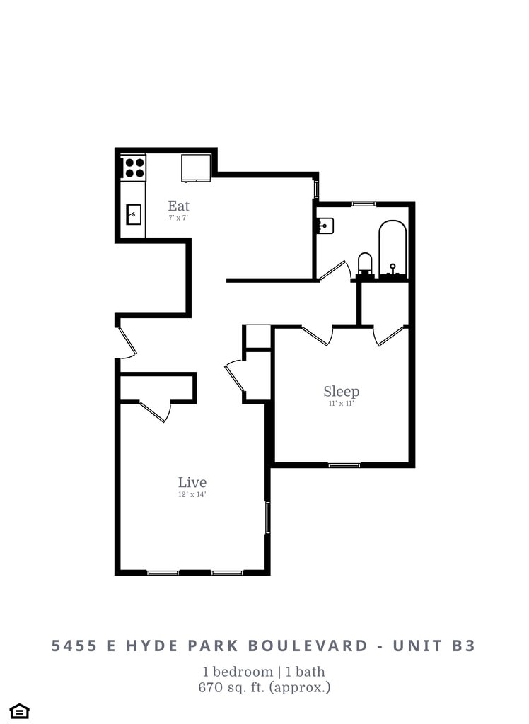 1 Bed |1 Bath (B2) - Floorplan 1 1 Bed | 1 Bath (B3)