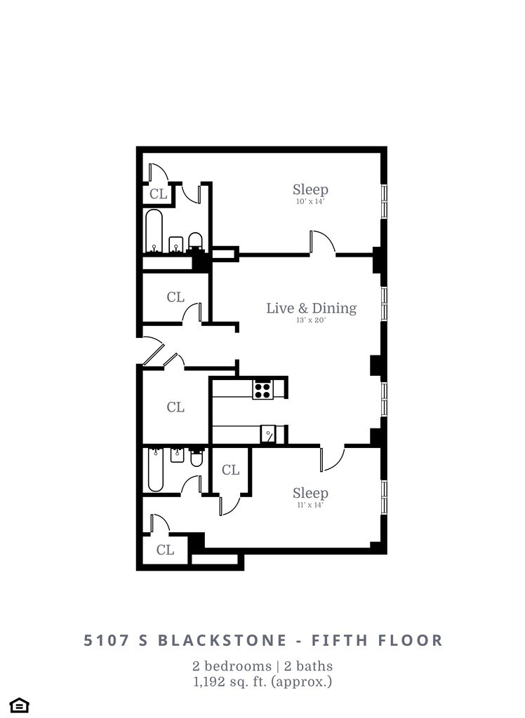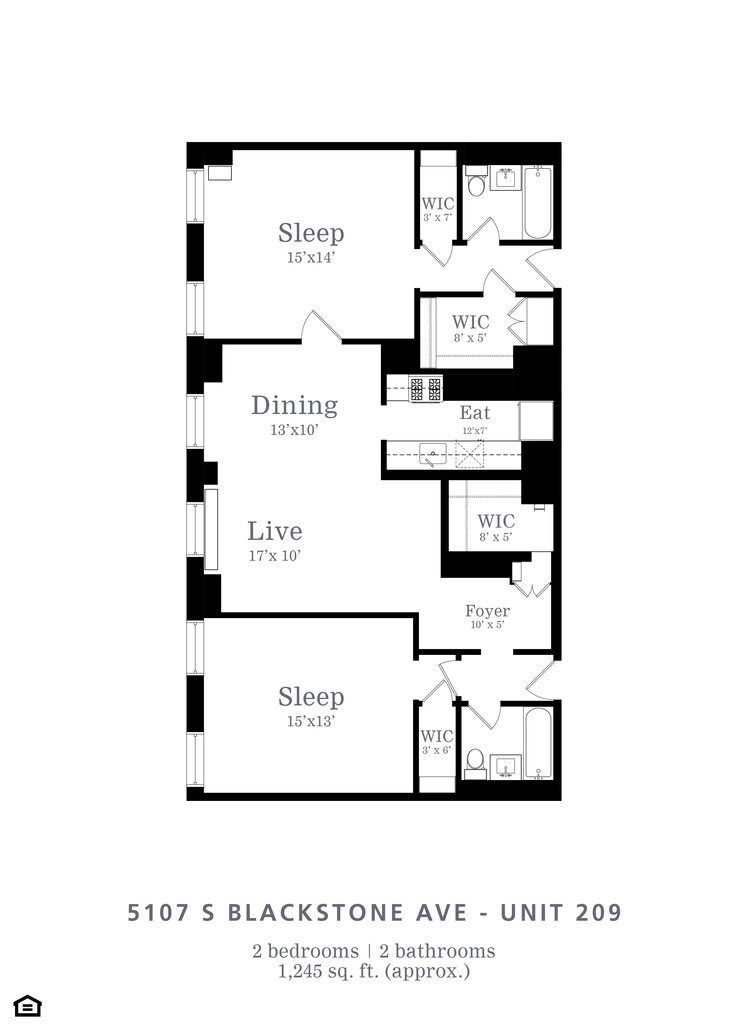 2 Bedroom, 2 Bathroom (C1) - Floorplan 1 2 Beds, 2 baths