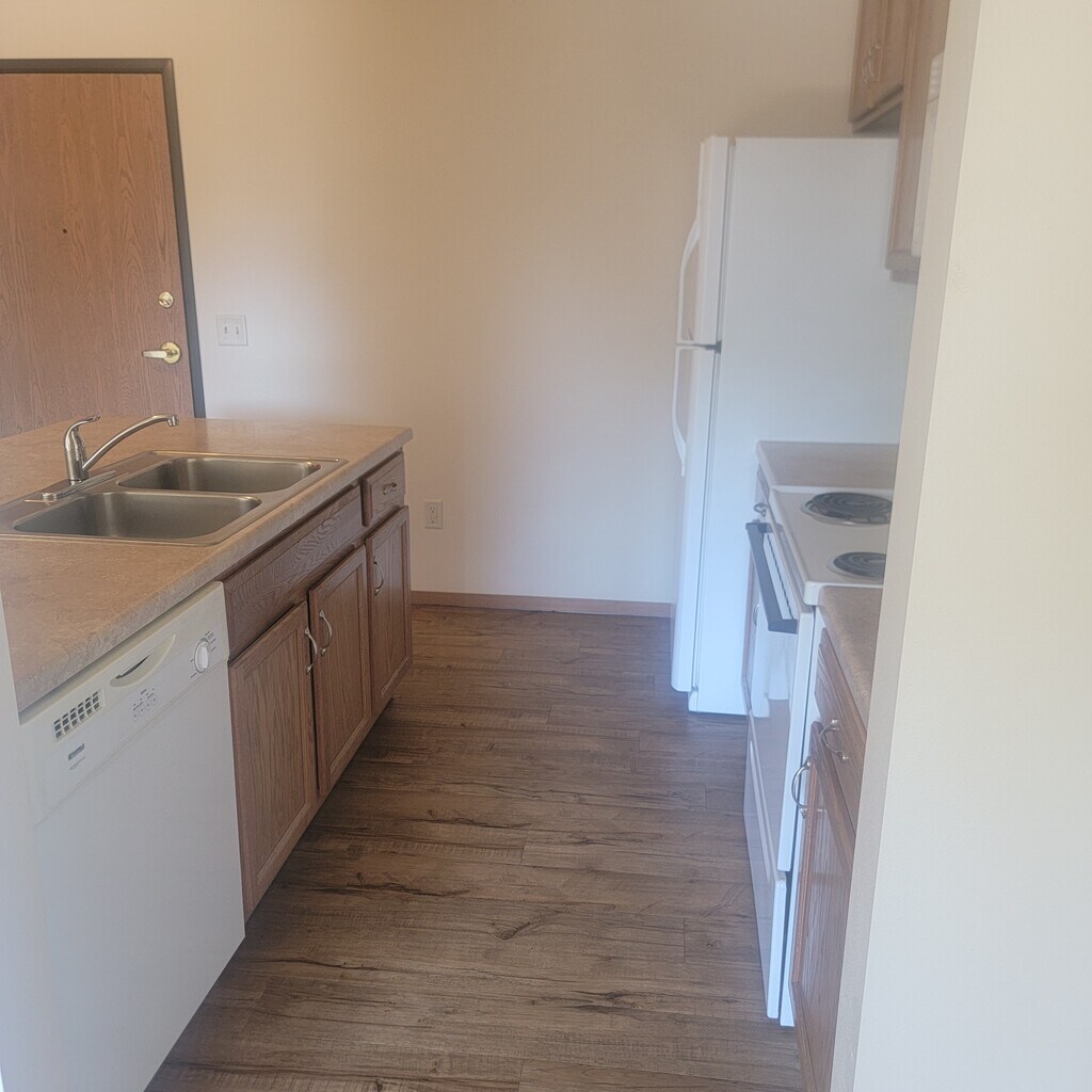 Charming one-bedroom, one-bathroom apartments featuring thoughtfully designed spaces. Many units include a convenient sit-at kitchen island, a built-in desk area, and a welcoming entry closet. Each apartment comes equipped with modern kitchen amenities such as a microwave, dishwasher, and refrigerator with an ice maker. The living area opens to either a private deck or patio, perfect for relaxation. Enjoy the convenience of on-site laundry and controlled access entry for added security. Heat, water, and garbage are included in the rent. Off-street parking is available for all residents.